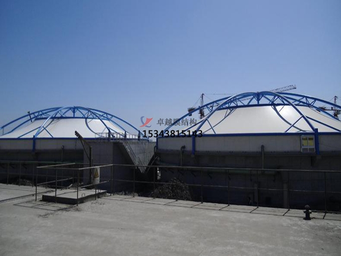 膜结构污水池加盖除臭具备优良的隔热保温实际效果,能反射70%的太阳光能源,消化吸收17%的膜材料自身,传输13%的发热量,膜结构污水池加盖除臭工程施工周期时间短,反映在全部生产加工生产制造都能在加工厂进行,只需在现场开展拼装和起重吊装。