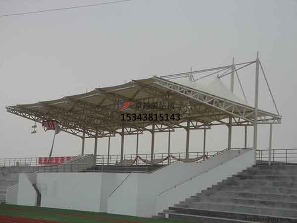 1)张拉式膜结构。这也是现在比较常见的一种,主要以膜材、钢索及支柱构成,是更能够展现出膜结构创新美观造型的形式。